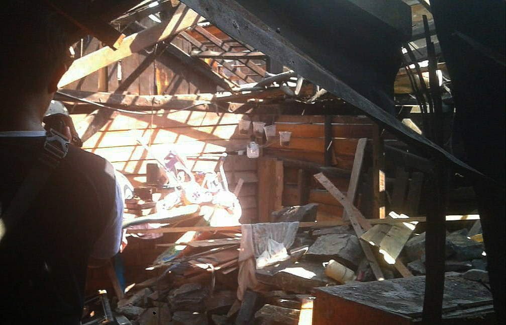 Pantauan dilokasi kejadian, tampak sisa reruntuhan yang sudah mulai tersusun rapi kembali berkat kerja bakti yang dilakukan warga sekitar. (MG-01)