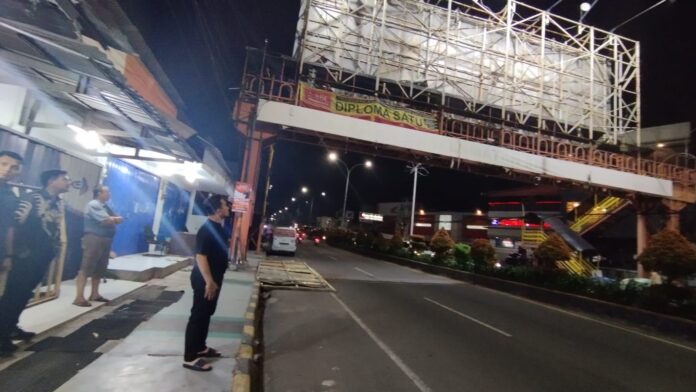 CILEGON, SSC – Reklame yang ada di Jalan Raya Ahmad Yani tepatnya di Jembatan Penyeberangan Orang (JPO) yang ada di depan Mal Ramayana dibongkar oleh Pemkot Cilegon, Jumat (15/8/2025) malam. Pembongkaran reklame itu dipantau langsung oleh Walikota Robinsar.