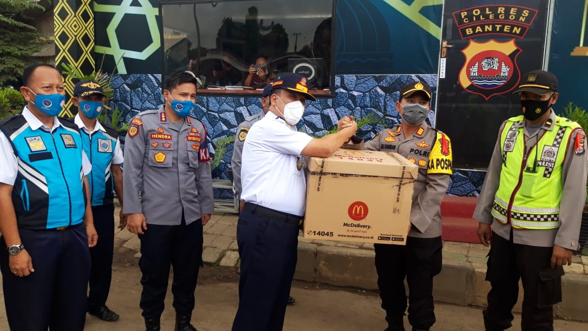 Kadishub Cilegon Uteng Dedi Apendi dan diterima langsung oleh Kapolsek Ciwandan AKP Ali Rahman, Minggu (16/5/2021).