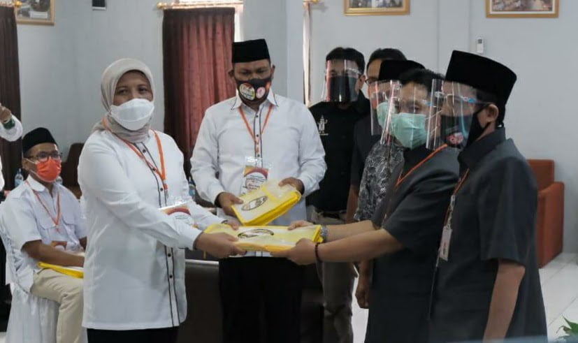 CILEGON, SSC – Bakal Pasangan Calon (Bapaslon) Walikota dan Wakil Walikota Cilegon, Ratu Ati Marliati-Sokhidin mendaftarkan diri ke Komisi Pemilihan Umum (KPU) Kota Cilegon, Jumaat (04/09/2020).