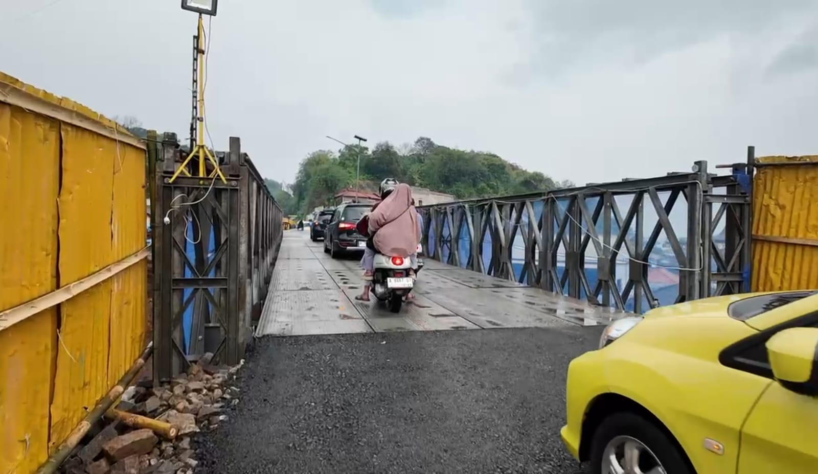 Jembatan darurat itu dipasang secara sementara untuk difungsikan oleh pengguna jalan. Namun kendaraan yang melintas dibatasi hanya khusus kendaraan kecil.