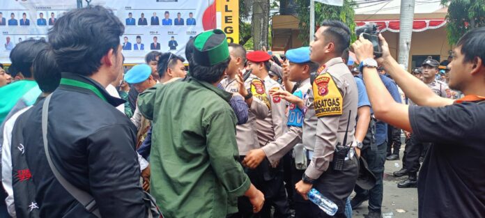 CILEGON, SSC – Pelantikan 40 anggota DPRD Kota Cilegon diwarnai aksi demonstrasi oleh puluhan mahasiswa dari sejumlah aliansi organisasi mahasiswa di Cilegon, Selasa (4/9/2024) pagi tadi.