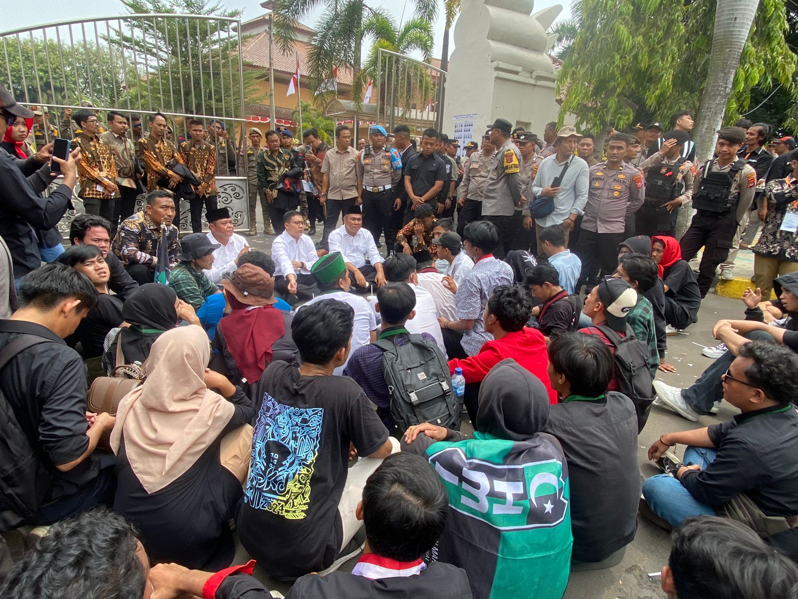 Tak berlangsung lama Ketua DPRD Cilegon sementara, Rizki Khairul Ichwan didampingi Wakil Ketua DPRD Sementara, Sokhidin dan anggota dewan, Ari Muhamad langsung menemui para mahasiswa di depan halaman Kantor DPRD Cilegon.
