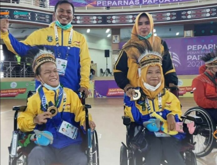 CILEGON, SSC – Dua atlet asal Kota Cilegon berhasil meraih medali emas di cabang olahraga Boccia beregu pada kegiatan Paralympic Nasional (Peparnas) XVI Papua. Kedua atlet yang berhasil membawa medali emas adalah Ananda Fauzi dan Handayani.