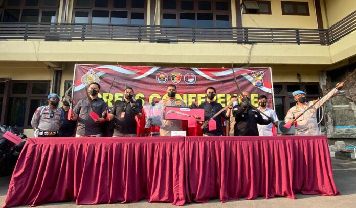Sambung Kapolres, dalam kejadian ini polisi berhasil mengamankan barang bukti 3 unit sepeda motor, 5 bilah celurit, 1 bilah arit ukuran 1,5 meter, 3 bilah golok.