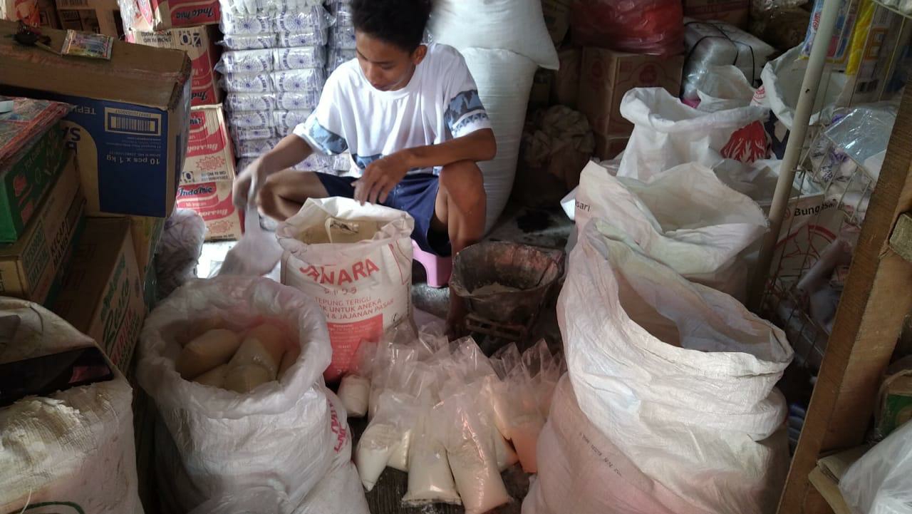 Marni, pedagang bahan pokok di Pasar Kranggot mengatakan, setiap hari dia menyiapkan satu karung gula pasir seberat 50 kilogram.