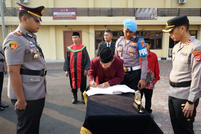CILEGON, SSC – Kapolres Cilegon AKBP Kemas Indra Natanegara melakukan mutasi dan promosi jabatan terhadap 9 perwira polisi di Lingkup Polres Cilegon. Serah Terima Jabatan berdasarkan Surat Keputusan Kapolda Banten Nomor : KEP/515/VIII/2024 tanggal 07 Agustus 2024 tentang Pemberhentian dan Pengangkatan dalam Jabatan di Lingkungan Polda Banten.