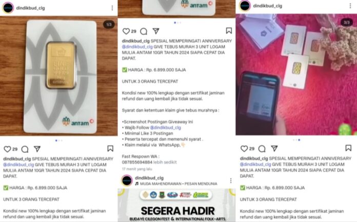 CILEGON, SSC- Instagram Dinas Pendidikan dan Kebudayaan (Dindikbud) Kota Cilegon diretas oleh orang tidak dikenal. Dalam tampilan Instagram Dindikbud @dindikbud_clg, peretas menampilkan tebus murah logam mulia antam.