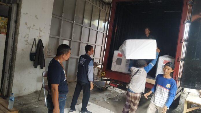 CILEGON, SSC – Distribusi logistik Pemilihan Umum (Pemilu) 2024 ke tingkat Panitia Pemilihan Kecamatan (PPK) di Kota Cilegon dijadwalkan akan dilakukan Hari ini, Kamis (25/1/2024). Penyaluran logistik ke Kantor Kecamatan ini dilakukan oleh Kantor Pos Kota Cilegon.