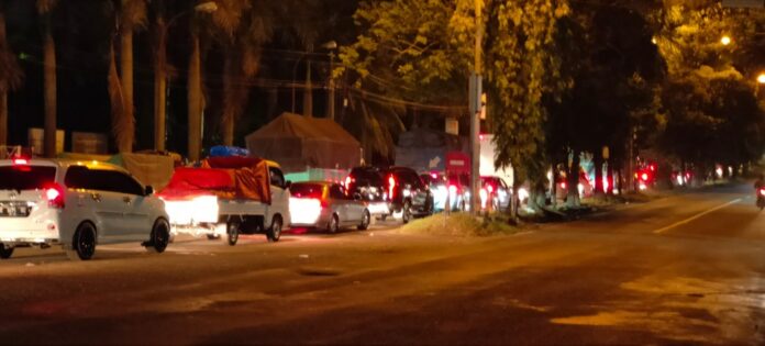 CILEGON, SSC – Arus lalu lintas kendaraan pemudik menuju arah Pelabuhan Merak di Jalan Raya Cilegon-Merak, Kota Cilegon tepatnya Perempatan Lampu Merah Kampus Untirta, macet parah, Jumat (29/4/2022). Kondisi tersebut mulai terpantau terjadi sejak pukul 02.30 WIB.