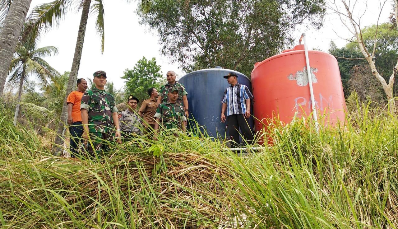 CILEGON, SSC – Dalam rangka kegiatan Binter Terpadu, Kodim (Komando Distrik Militer) 0623 Cilegon memasang tiga unit tangki air (toren) dan pipanisasi untuk membantu warga di RT 03 RW 07, Lingkungan Sukamulya, Kelurahan Mekarsari, Kecamatan Pulomerak, Kota Cilegon yang terdampak kekeringan.