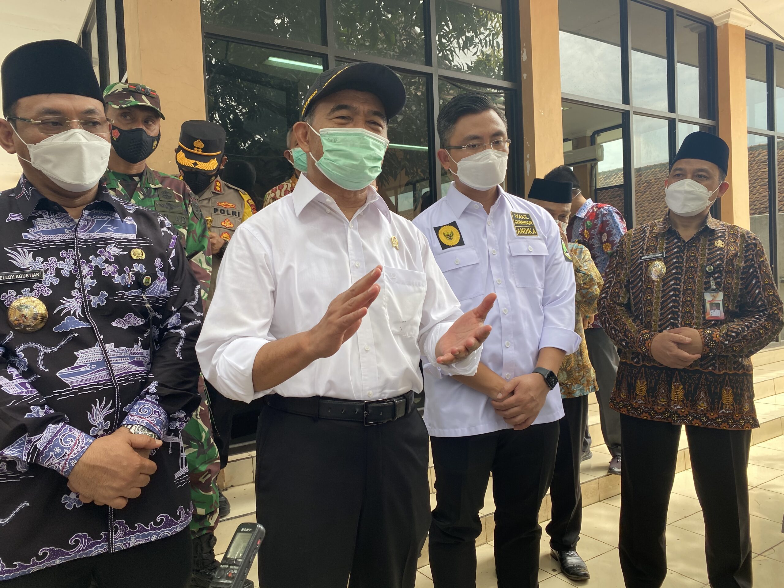 CILEGON, SSC – Menteri Koordinator Bidang Pembangunan Manusia dan Kebudayaan (PMK) Muhadjir Effendy melakukan kunjungan ke beberapa tempat di Kota Cilegon, Jumat (12/3/2021). Selain meninjau lokasi isolasi mandiri dan berdialog dengan pekerja UMKM di Kelurahan Jombang Wetan, Menteri PMK Muhadjir juga bertatap muka dengan kader posyandu, PKK, Tracer, Swaber, Satgas Covid-19 dan Kepala di Kelurahan Masigit, Kecamatan Jombang.