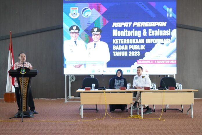CILEGON, SSC – Dinas Kominfo, Statistik dan Persandian menggelar rapat persiapan monitoring dan evaluasi keterbukaan informasi badan publik, di Aula Diskominfo, Kamis (3/8/2023).