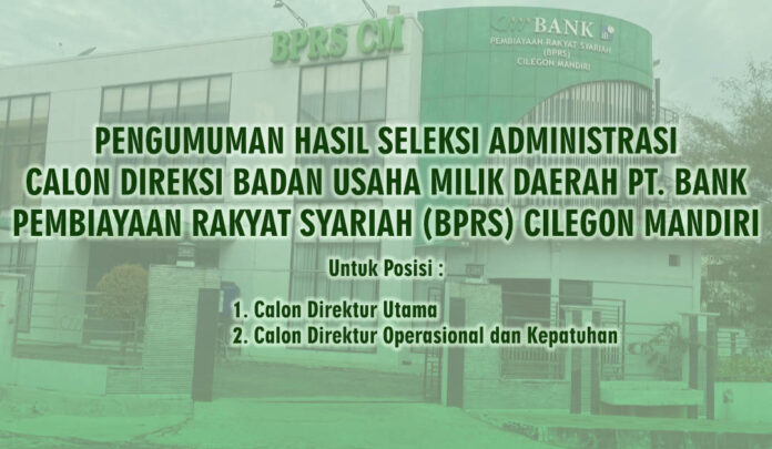 CILEGON, SSC – Panitia Seleksi (Pansel) mengumumkan hasil seleksi administrasi calon direktur utama dan direktur operasional dan kepatuhan Badan Usaha Milik Daerah PT Bank Pembiayaan Rakyat Syariah (BPRS) Cilegon Mandiri.