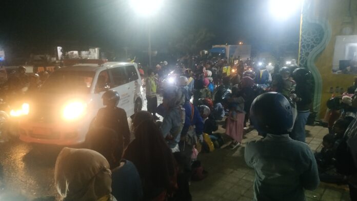 Sampai pukul 03.00 WIB, kendaraan pemudik motor masih terpantau memadati Pelabuhan Ciwandan. Petugas melakukan penyekatan dengan delaying sistem baik di dalam pelabuhan dan juga di persimpangan JLS. (Ronald/Red)