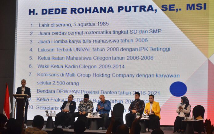 Sebelum memaparkan visi misi, Dede Rohana Putra mengawali dengan menjelaskan profilnya. Anggota DPRD Provinsi Banten Terpilih dua periode ini juga menyampaikan sejumlah pertimbangan yang menjadi dasar dia maju mencalonkan Walikota Cilegon.