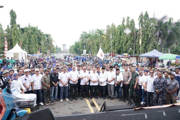 CILEGON, SSC – Pemerintah Kota (Pemkot) Cilegon terus berkomitmen untuk memberikan perhatian secara serius dan kepeduliannya terhadap para buruh. Atas dasar itu, pada momentum Hari Buruh Sedunia, Pemkot Cilegon memperingatinya secara bersama-sama dengan berbagai Forum Buruh di Ruas Jalan Halaman Kantor Wali Kota Cilegon, Rabu (1/5/2024).