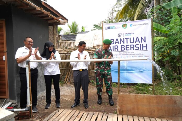 JAKARTA, SSC – PT Krakatau Steel (Persero) Tbk dalam memperingati HUT Ke-54 pada Rabu, 28 Agustus 2024 mengadakan berbagai rangkaian kegiatan. Salah satunya, Krakatau Steel Group memberikan bantuan Tanggung Jawab Sosial dan Lingkungan berupa pembangunan sarana dan prasarana penyediaan air bersih melalui program bantuan Sumur Artesis di Kampung Kagungan, Kelurahan Gerem, Kecamatan Grogol Kota Cilegon.