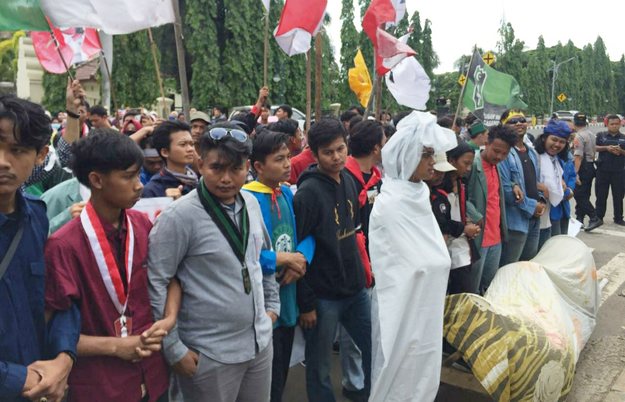 CILEGON, SSC – Puluhan mahasiwa yang tergabung dalam Front Mahasiwa Kota Cilegon menuding Walikota Cilegon, Edi Ariadi dan Wakil Walikota Cilegon Ratu Ati Marliati gagal dalam memimpinan Kota Cilegon. Mereka menuding kepala daerah itu gagal dalam menyelesaikan berbagai persoalan di Cileton mulai banjir, pengangguran, kesehatan, pendidikan, infrastruktur dan persoalan lainnya.