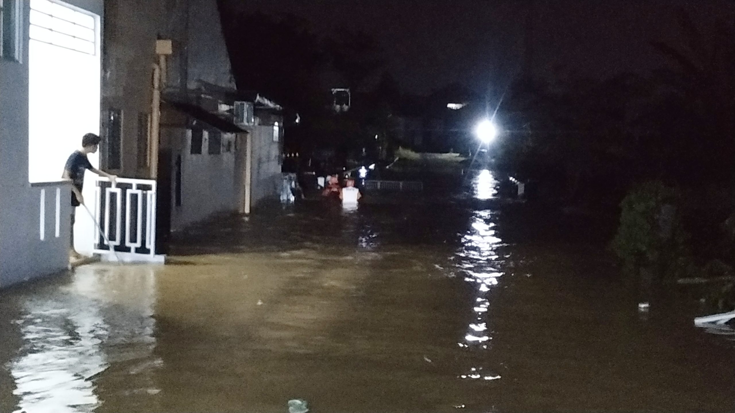 Ia memperkirakan, terdapat puluhan rumah warga yang terendam banjir. Bahkan warga yang tinggal di salah satu kluster perumahan lain dekat di rumah dia tinggal terjebak karena jembatan yang dilalui terendam banjir.