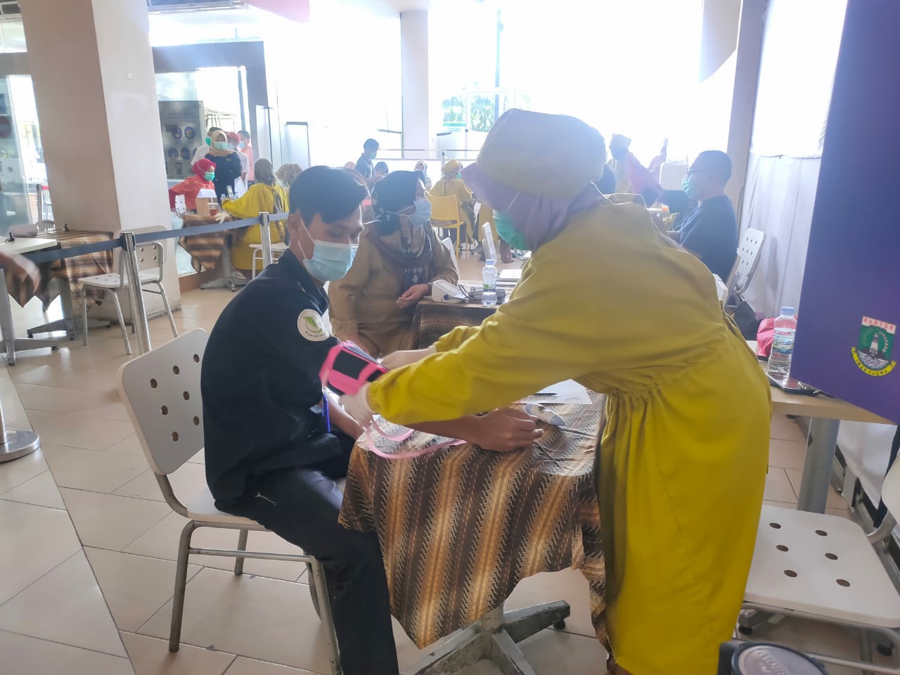 SERANG, SSC – Sebanyak 700 pegawai yang bekerja di area Mall of Serang (MoS) menjalani suntik vaksin Covid-19. Pasalnya dalam vaksinasi tahap pertama tersebut terdapat dua orang pegawai yang jatuh pingsan usai disuntik vaksin.