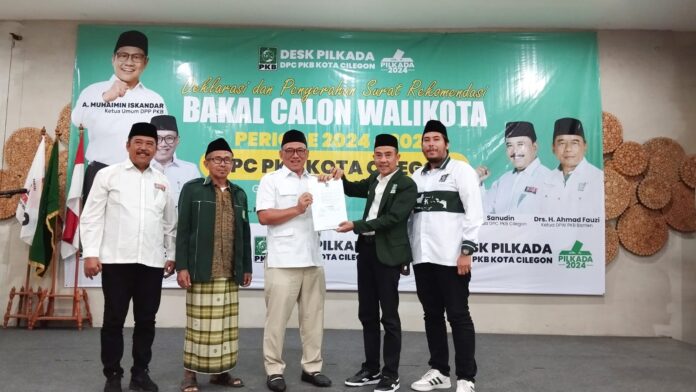 CILEGON, SSC – Walikota Cilegon Petahana, Helldy Agustian mendapat surat rekomendasi dari DPP Partai Kebangkitan Bangsa (PKB)  untuk maju menjadi Bakal Calon Kepala Daerah Kota Cilegon Periode 2024-2029. Penyerahan Surat Rekomendasi Bakal Calon Walikota Cilegon kepada Helldy Agustian diselenggarakan DPC PKB Kota Cilegon di Green Hotel, Kota Cilegon, Minggu (30/6/2024).