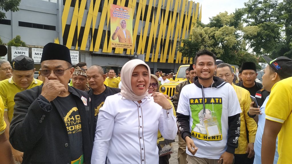 Sejak awal tiba pada Sabtu (7/3/2020) pukul 14.00 WIB di lokasi tepat di depan DPD II Golkar Cilegon, Bacalon Walikota Cilegon, Ati Marliati yang telah diusung oleh Partai Golkar disambut oleh ribuan pendukungnya.