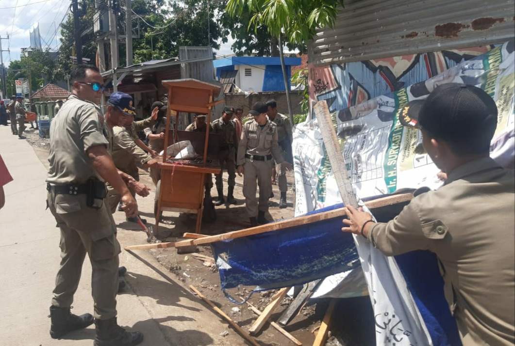 “Ada 10 bangunan semi permanen yang berhasil kita (Satpol PP) robohkan karena berjualan di pinggir jalan. Meski belum ada trotoar, semestinya PKL ini tidak berjualan di pingir jalan,” kata Hasanudin kepada awak media usai penertiban pedagang.