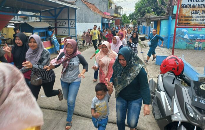 Simulasi Kebencanaan Gempa Bumi, Warga Merak Panik Berhamburan Keluar Rumah