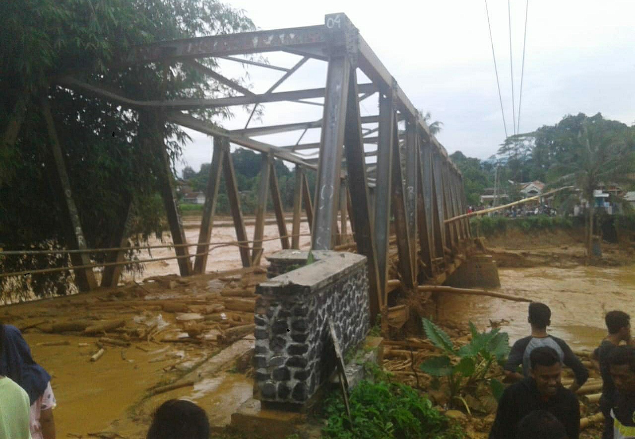 “Tadinya masih bisa digunakan, bahkan masyarakat pada disitu pas pagi, mereka ngeliatin air yang lagi meluap, kendaraan juga normal pas jam 10an masyarakat pada bubar karen air makin tinggi sampai menyentuh permukaan aspal jalan jembatan,” ujar Iim saat dilokas kejadian.
