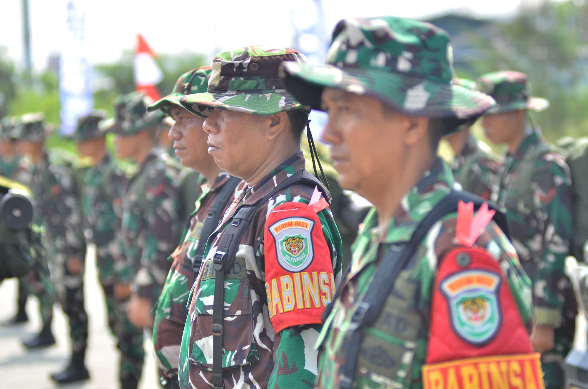 Anggota Kodim Cilegon mengikuti Upacara Pembukaan Program TNI Manunggal Membangun Desa (TMMD) Ke-128 di Pelabuhan Indah Kiat, Kota Cilegon, Rabu (22/5/2026). Foto Ronald/Selatsunda.com