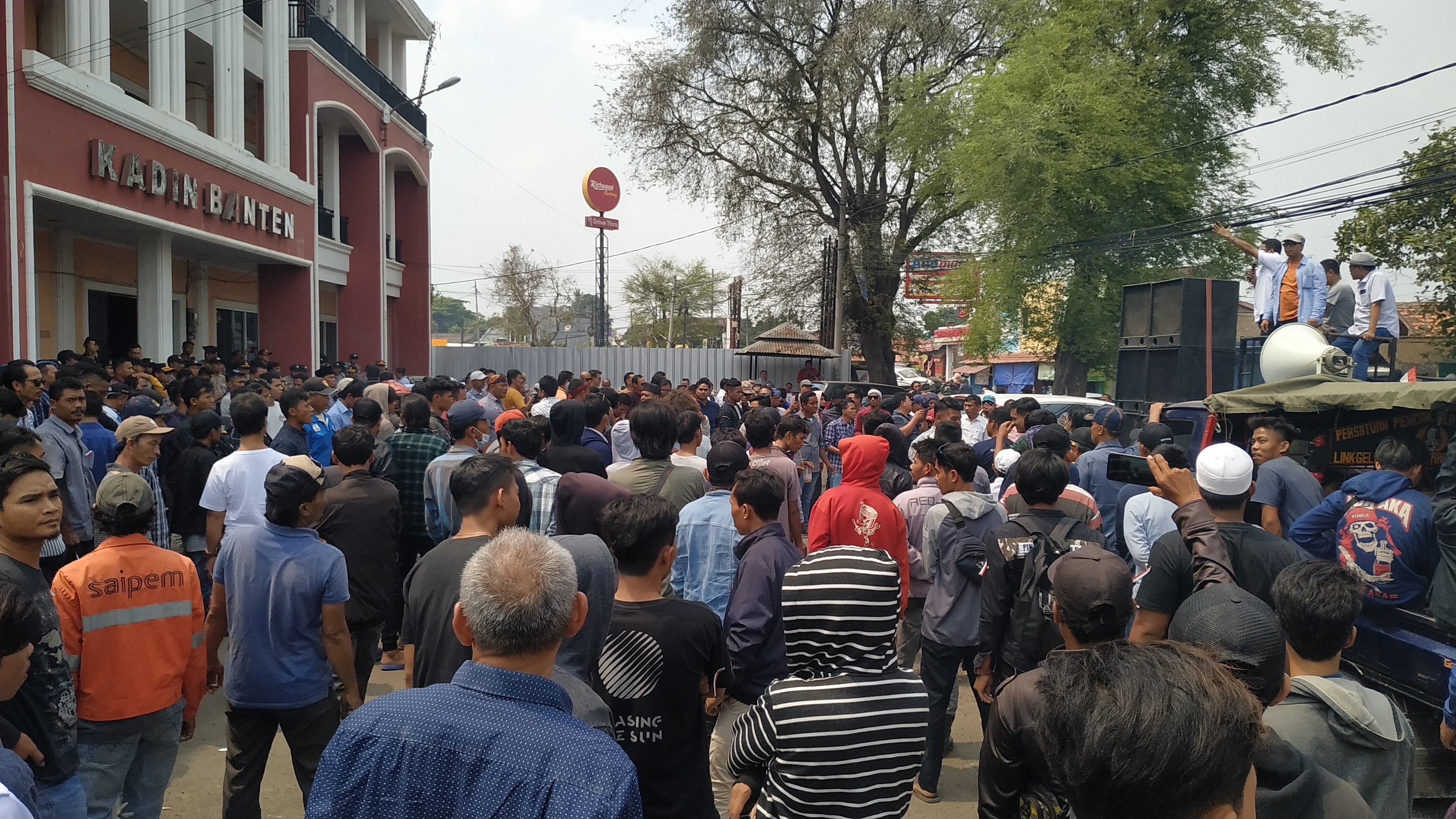 Pantauan terakhir, aksi masih berlanjut. Sejumlah perwakilan pengusaha akhirnya diminta bertemu pengurus Kadin Banten untuk bermediasi. (Ronald/Red)